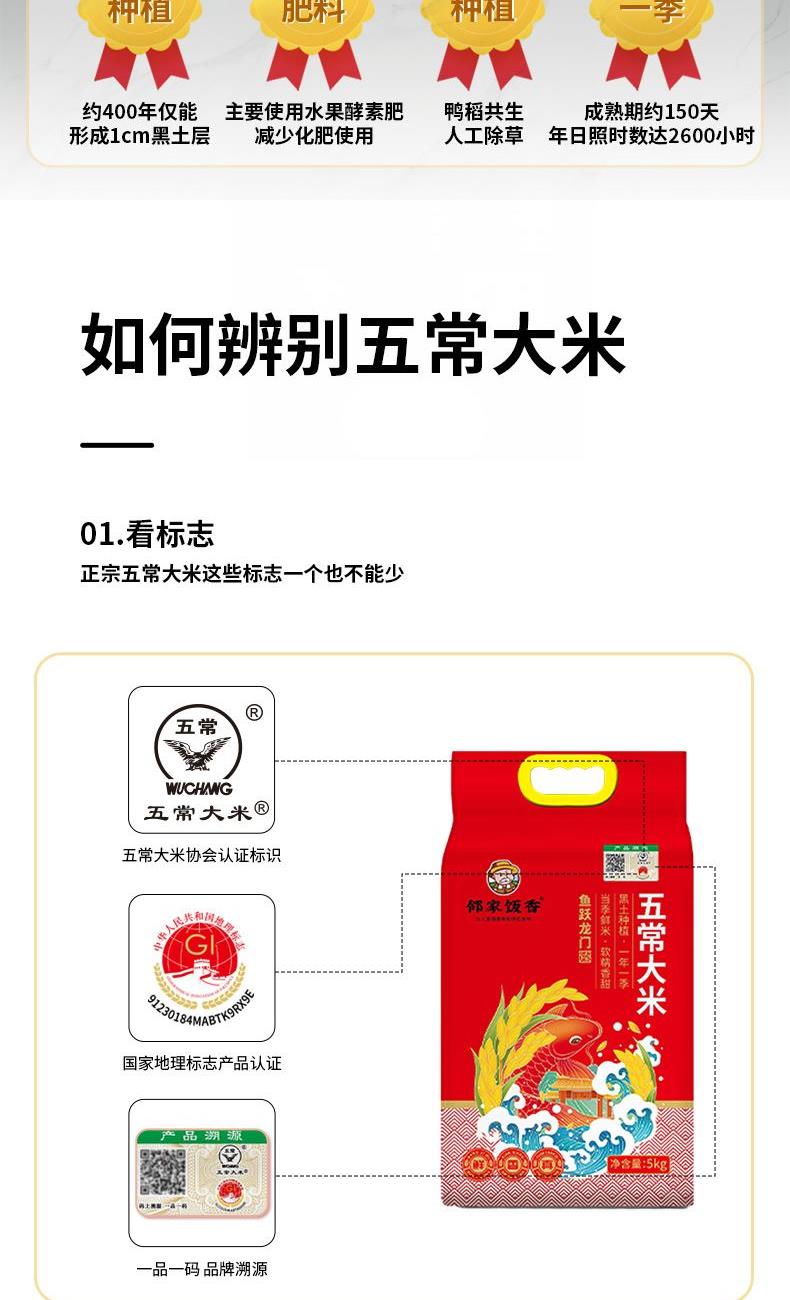 鄰家飯香魚躍龍門款五常大米5kg/袋真空雙層包裝YF129