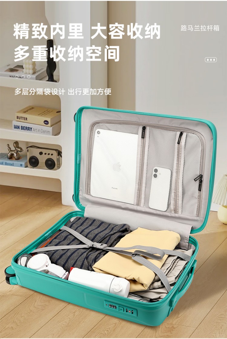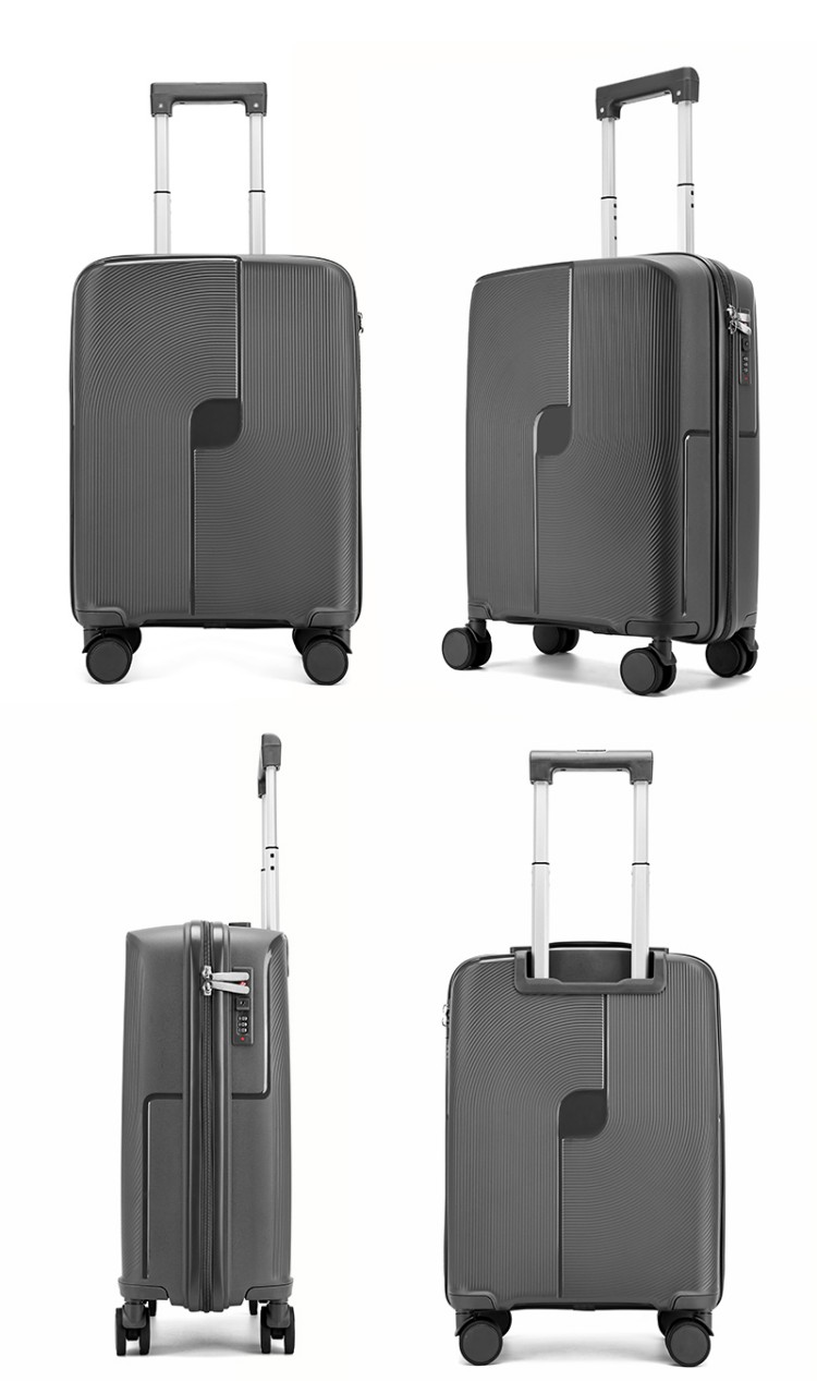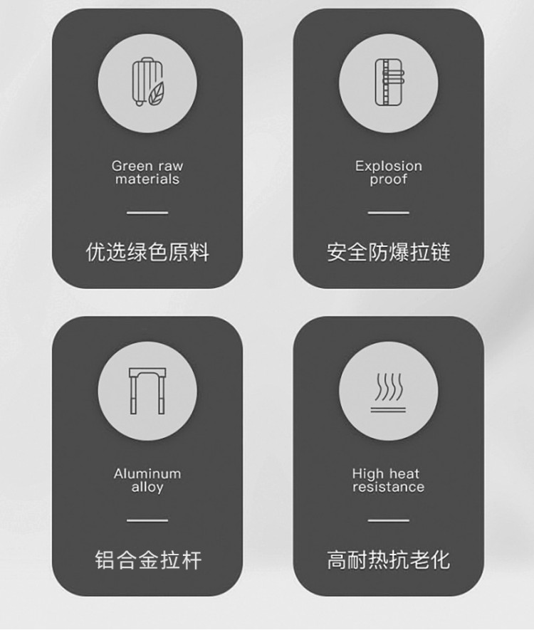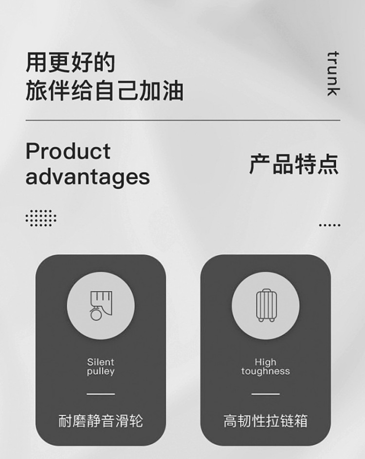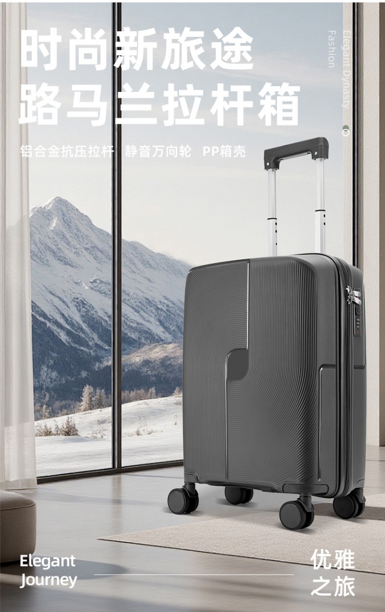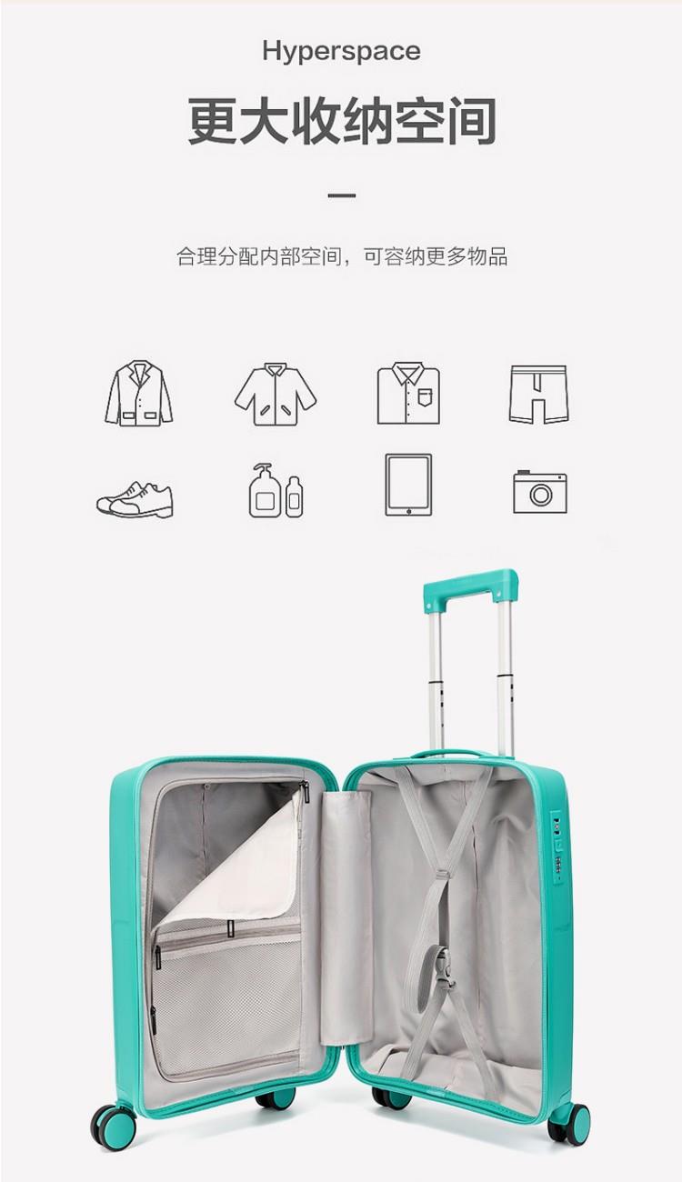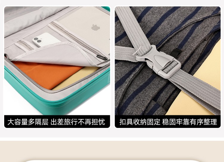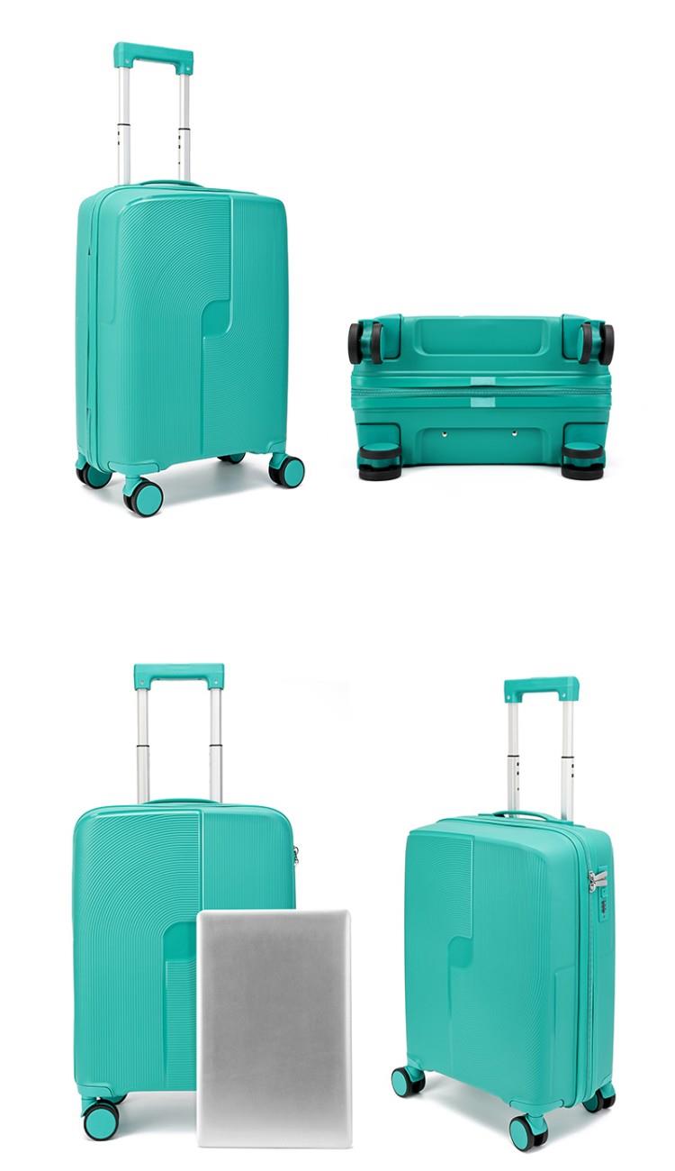 產(chǎn)品賣點(diǎn):PP材質(zhì),結(jié)晶度高,拉桿箱表面更加強(qiáng)硬,可以有效的防止磕碰造成劃痕,而且耐沖擊和防水性好;