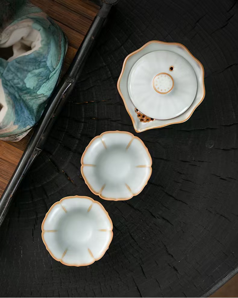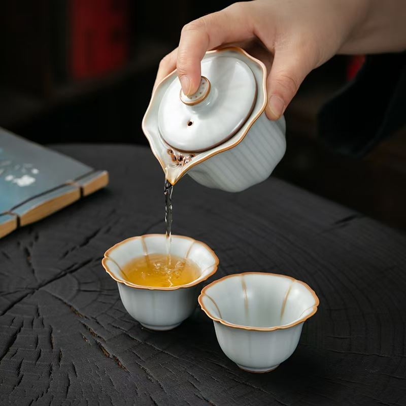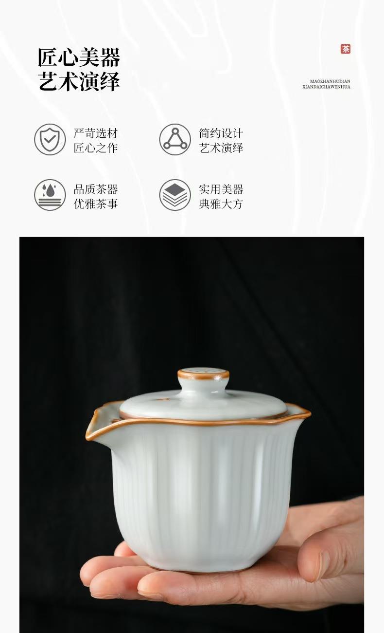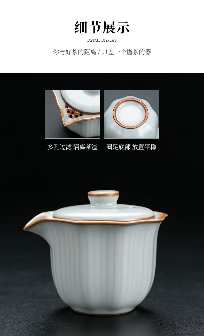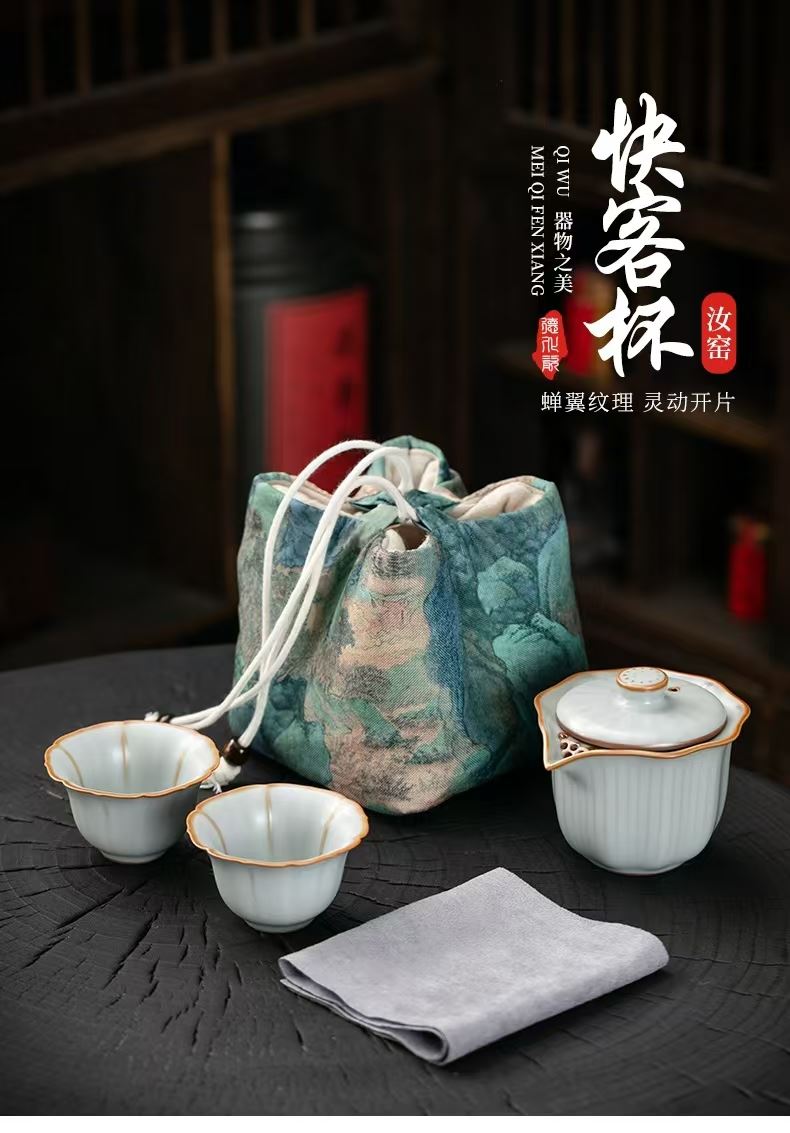 配 制: 1壺 2杯 1茶巾 1旅行袋 規(guī)格:壺:9.8*8cm 杯7.1*4.2cm 材質(zhì):黃汝瓷 布袋 推薦說明:亞黃汝瓷,瑪瑙入釉,蟬翼開片。技術(shù)新品,采用高價優(yōu)質(zhì)瓷土,紫口鐵足。立體浮雕杯身。杯身開片,可養(yǎng)瓷。