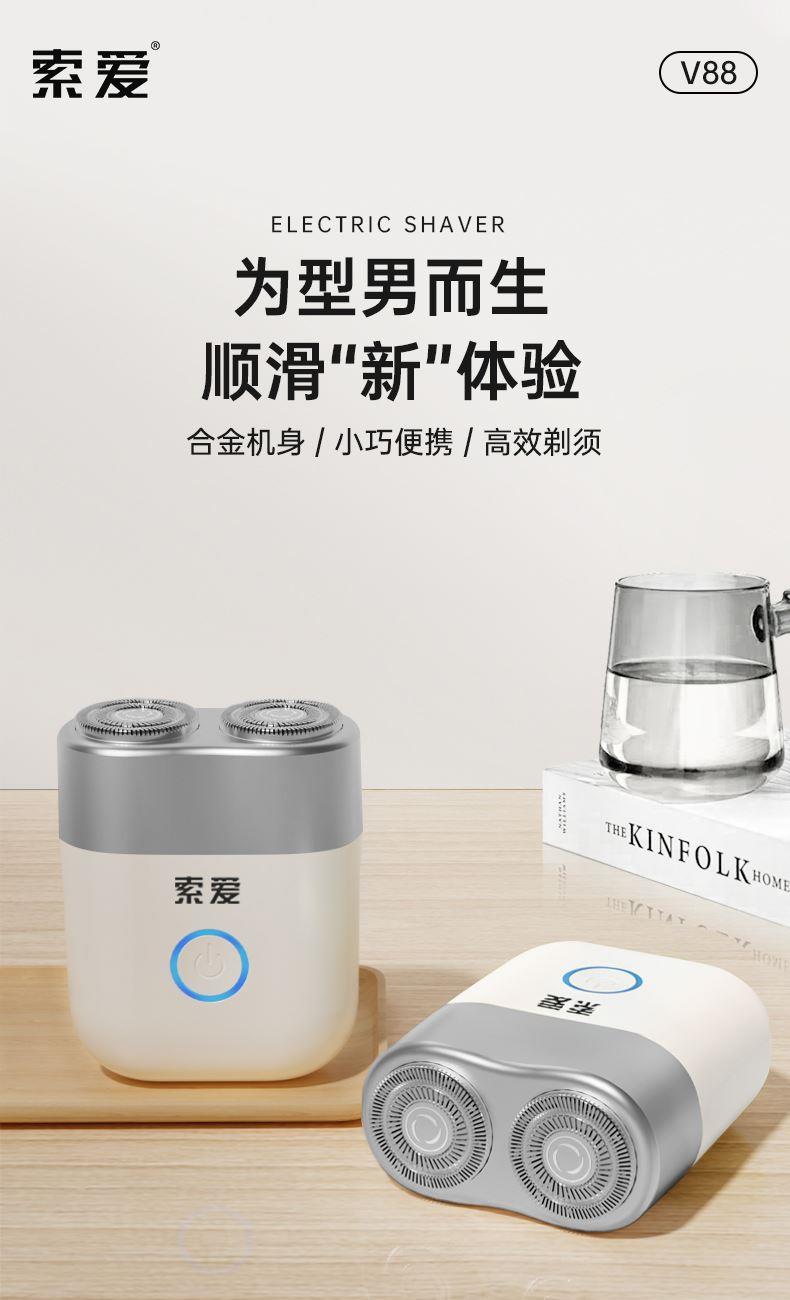 索愛送禮屬性鋅合金雙刀頭電動剃須刀V88(送手提袋)