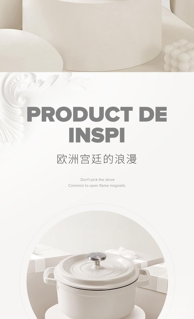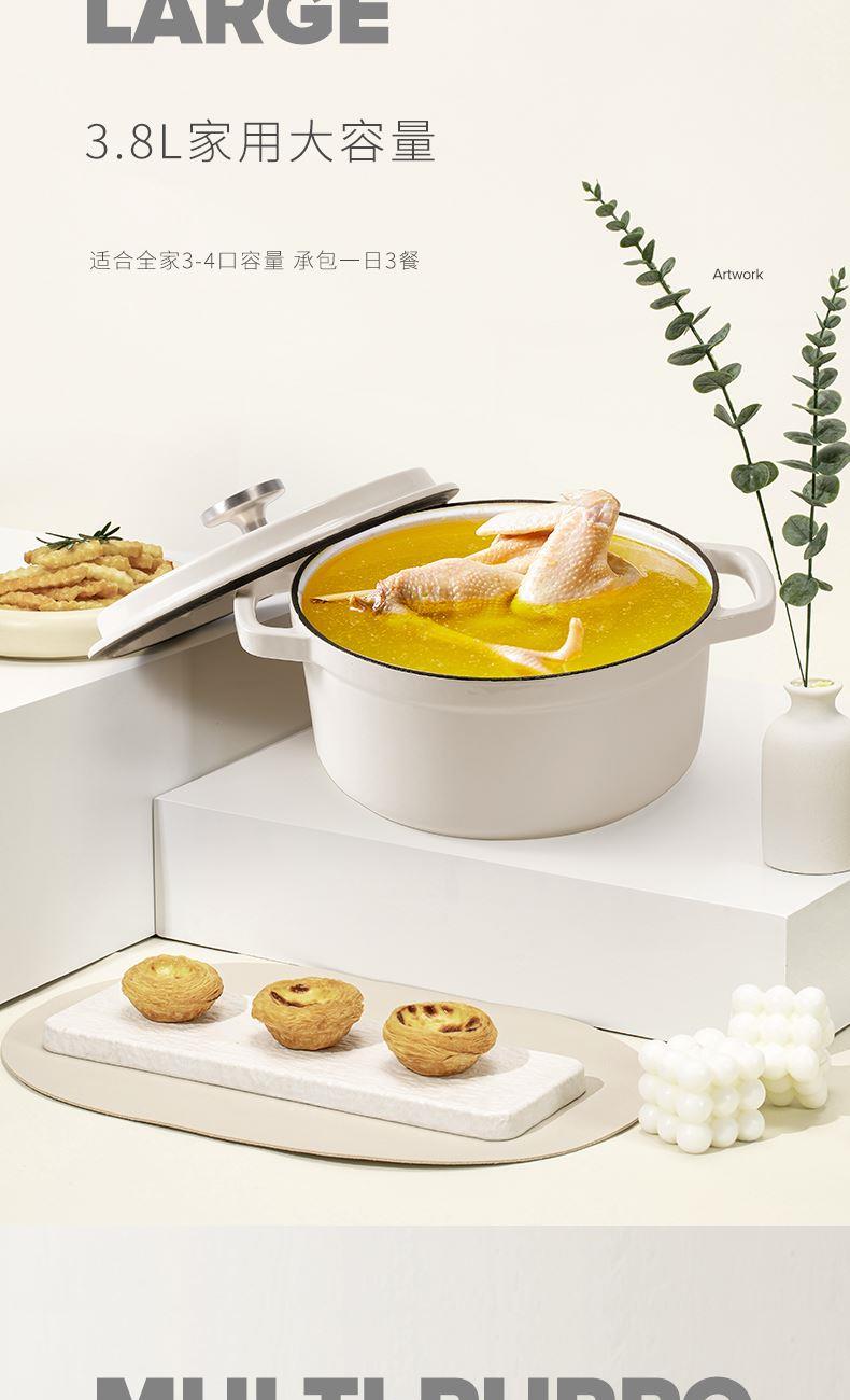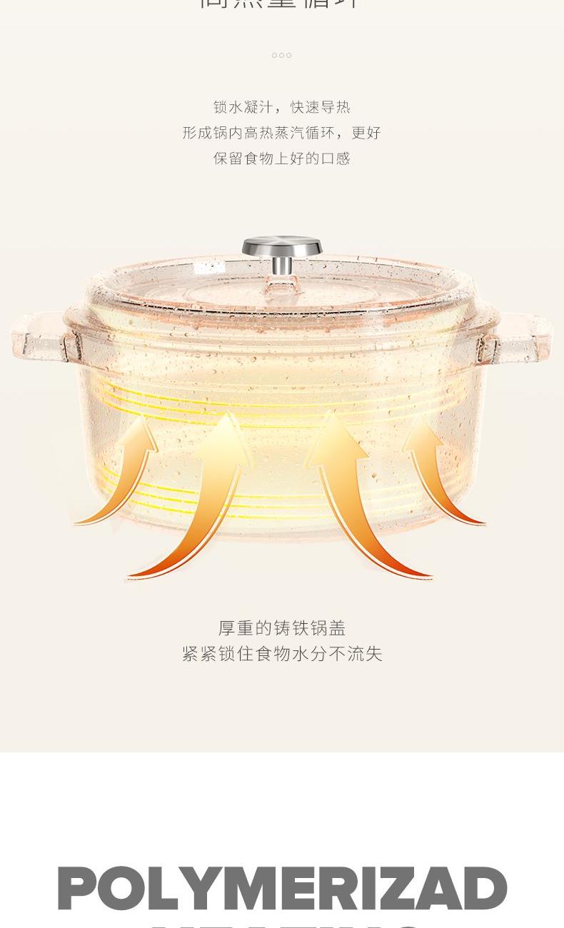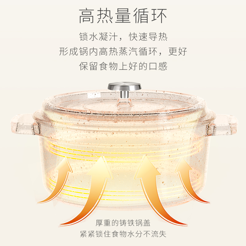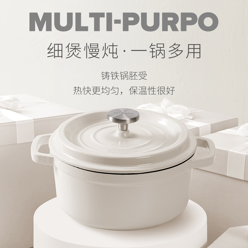 【型號(hào)】VE033 【SKU】VE03301 【材質(zhì)】鑄鐵琺瑯 【規(guī)格】24cm 【凈重】4.5kg 【毛重】5.4kg 【包裝方式】彩盒+郵購(gòu)箱 【外箱尺寸】284*252*147mm 【顏色】白色 【條碼】6972547373258 純白潔凈,隔污防銹; 鎖水凝汁,燜煮入味; 4-5人食,3.8L大容量; 炒煎燜燉,一鍋多用; 天然鑄鐵,加熱快,不挑爐灶。