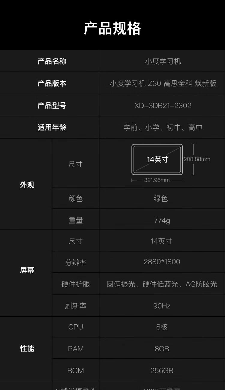 小度智能學(xué)習(xí)平板學(xué)習(xí)機(jī)Z30高思全科版(14英寸8+256G