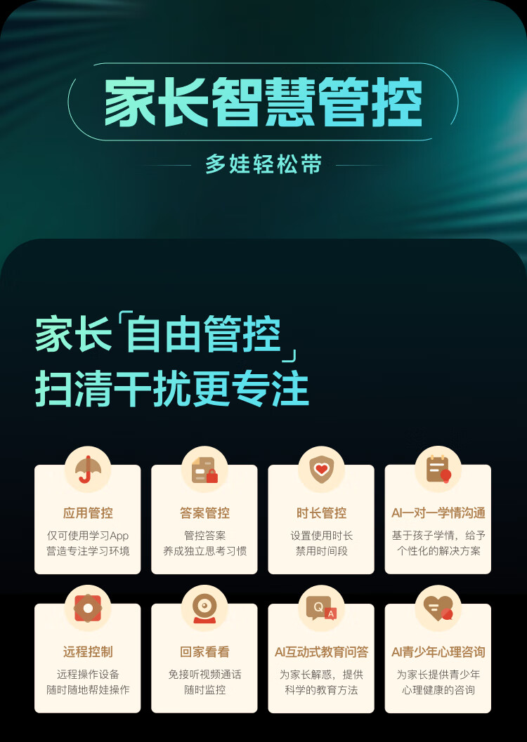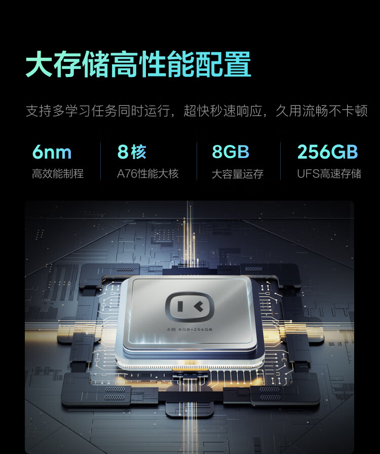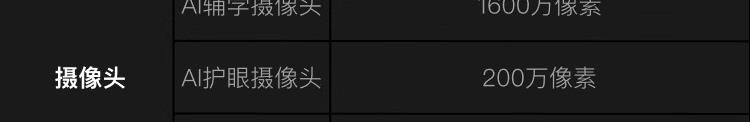 攝像頭:AI輔學(xué)攝像頭1600萬像素,AI護(hù)眼攝像頭200萬像素,后置800萬像素
