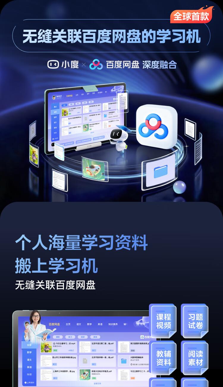 個人海量學(xué)習(xí)資料搬上學(xué)習(xí)機(jī):無縫關(guān)聯(lián)百度網(wǎng)盤網(wǎng)盤內(nèi)課程/閱讀/習(xí)題實(shí)時同步,家長/學(xué)生空間獨(dú)立