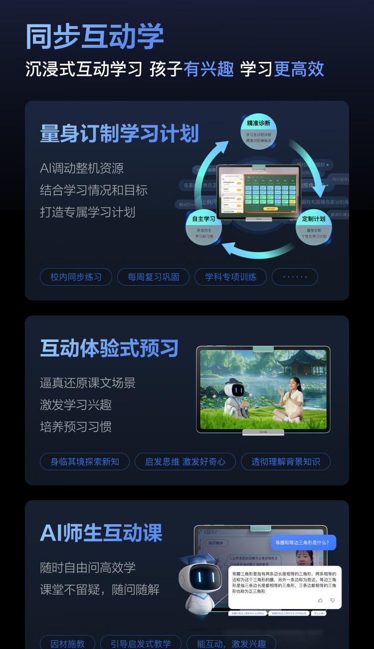 AI老師全程1v1作業(yè)輔導(dǎo),AI老師量身定制學(xué)習(xí)計(jì)劃,AI互動體驗(yàn)式預(yù)習(xí)
