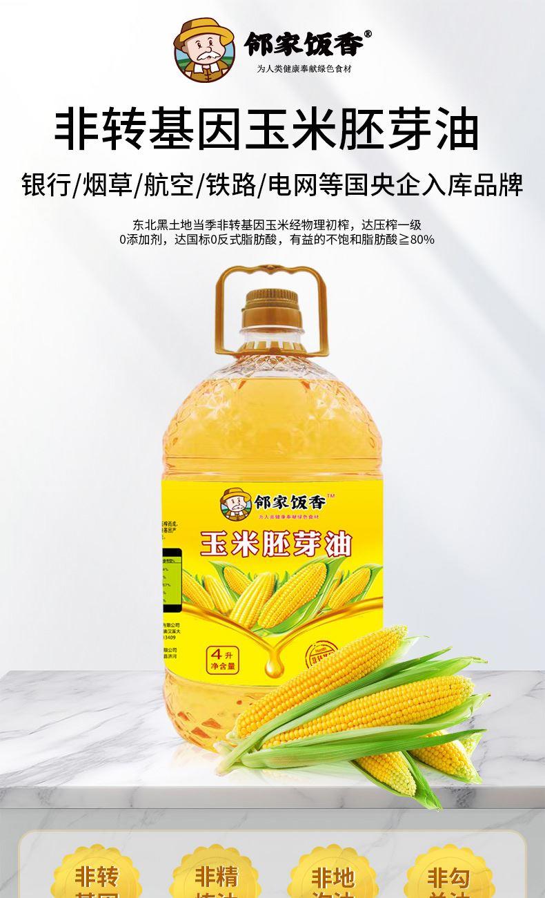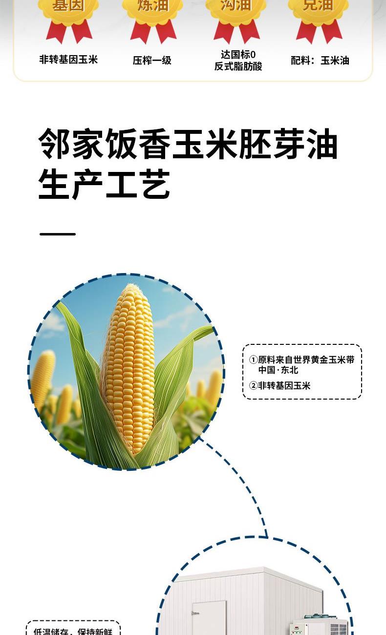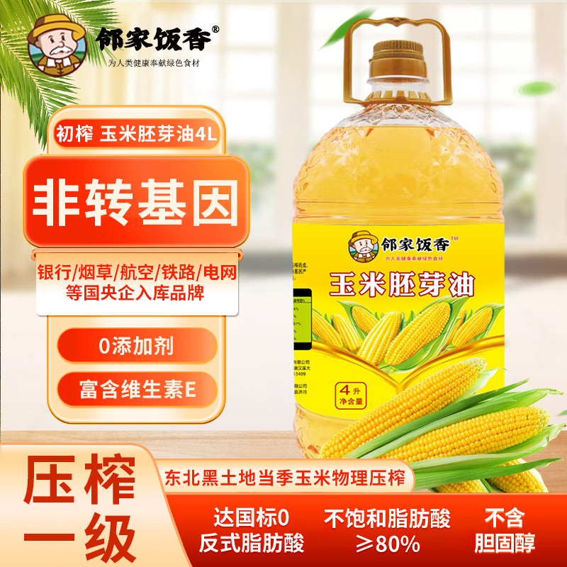 鄰家飯香非轉(zhuǎn)基因物理壓榨一級玉米胚芽油4L/桶LJFX129