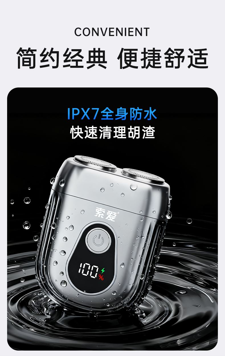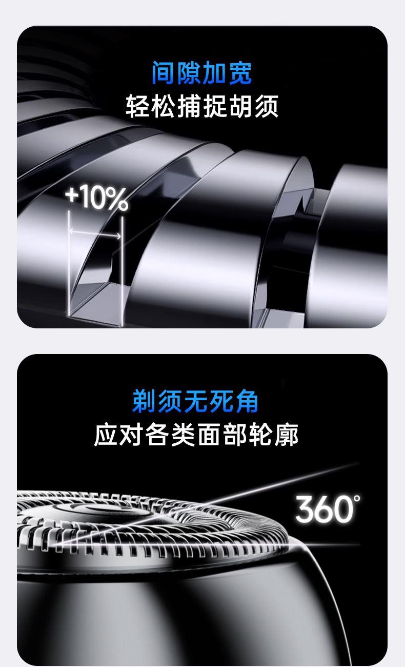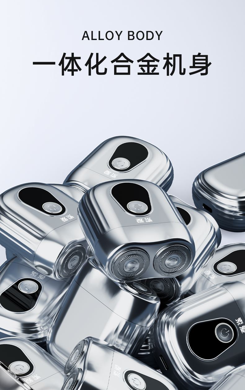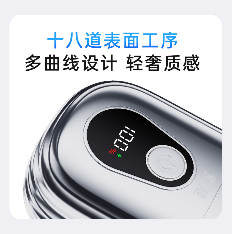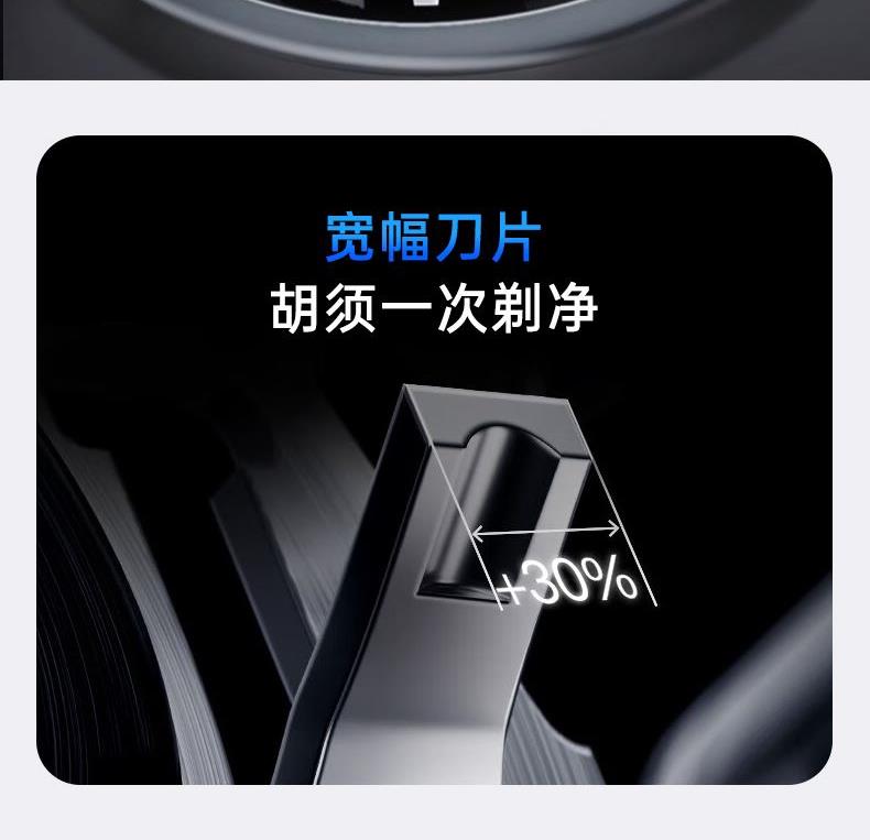 合金機芯、合金刀頭/磁吸刀頭設(shè)計/合金機身 智能數(shù)顯顯示/智能誤觸旅行鎖/ IPX-7級防水全身水洗, /干濕雙剃/5分鐘快速清理胡須 充電時長1小時/續(xù)航高達90分鐘 7200轉(zhuǎn)/分鐘高速馬達/低震