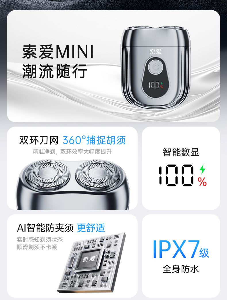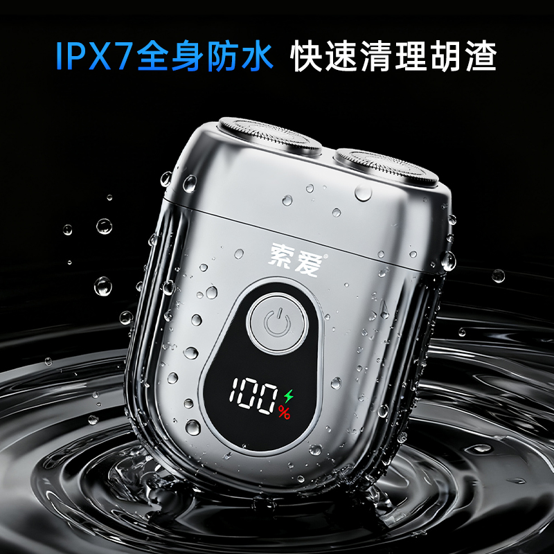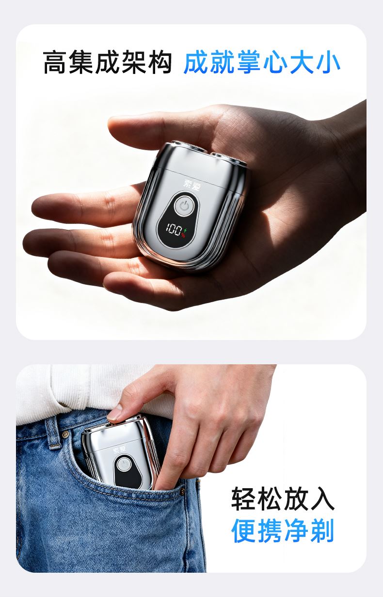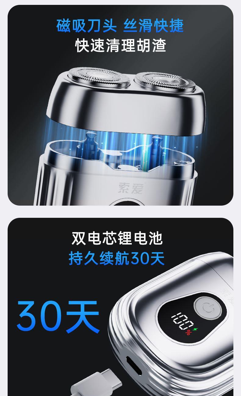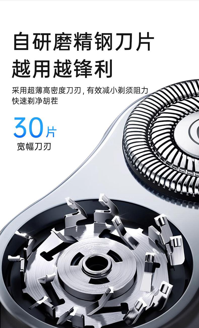 合金機芯、合金刀頭/磁吸刀頭設(shè)計/合金機身 智能數(shù)顯顯示/智能誤觸旅行鎖/ IPX-7級防水全身水洗, /干濕雙剃/5分鐘快速清理胡須 充電時長1小時/續(xù)航高達90分鐘 7200轉(zhuǎn)/分鐘高速馬達/低震