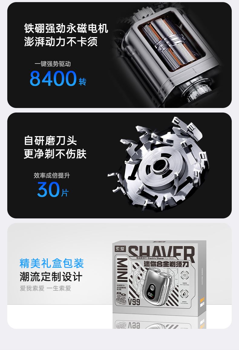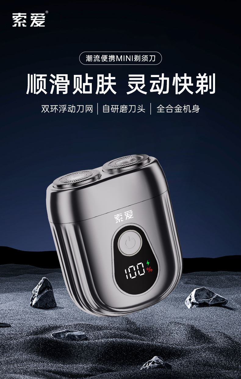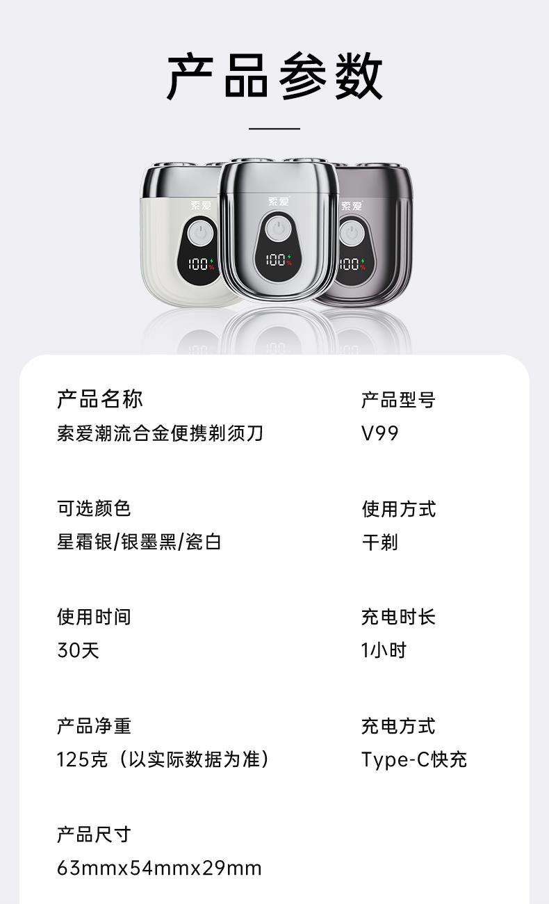 索愛合金電動剃須刀V99含手提袋(贈鼻毛修剪器A15銀色