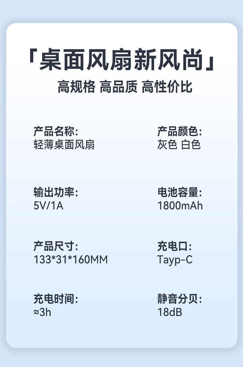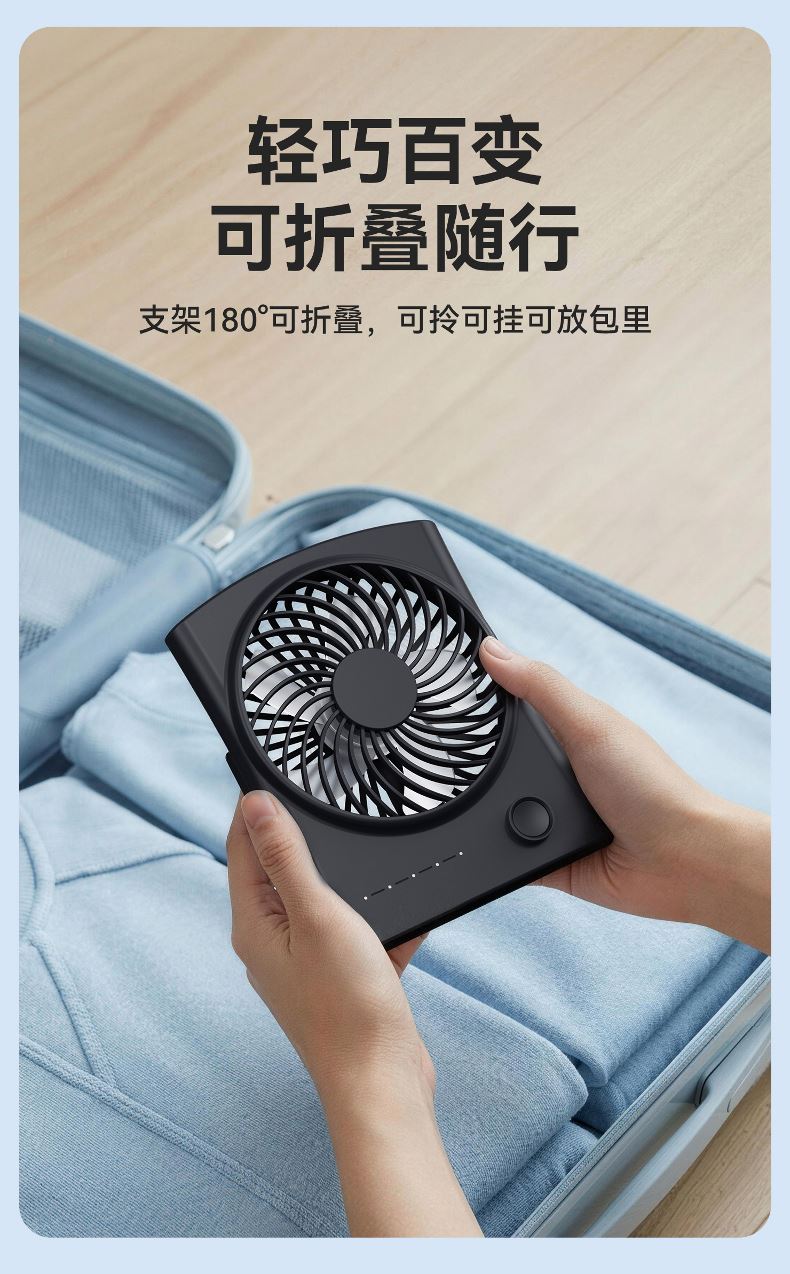 *掛立兩用,180度自由旋轉(zhuǎn) *5檔大風(fēng)力調(diào)節(jié),小巧便攜 *輕薄便攜,面罩可拆洗 *支持小批量定制LOGO