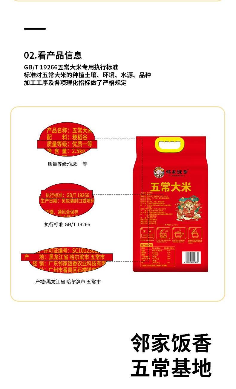 鄰家飯香二級(jí)產(chǎn)區(qū)五常大米2.5kg/袋真空雙層LJFX76