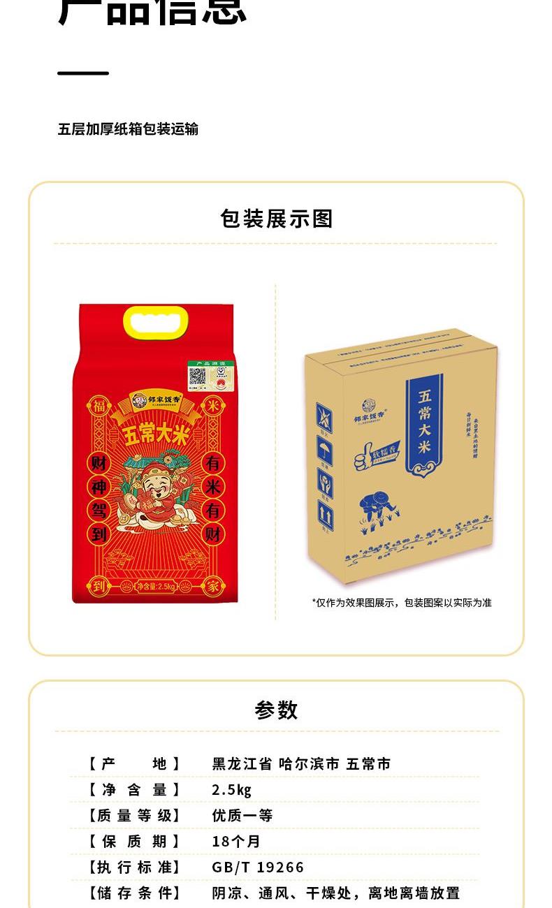 規(guī)格:2.5kg/袋 產(chǎn)品尺寸(帶包裝):285*215*80 保質(zhì)期:18個(gè)月 產(chǎn)地:黑龍江省五常市 發(fā)貨地:黑龍江省五常市/廣東省廣州市