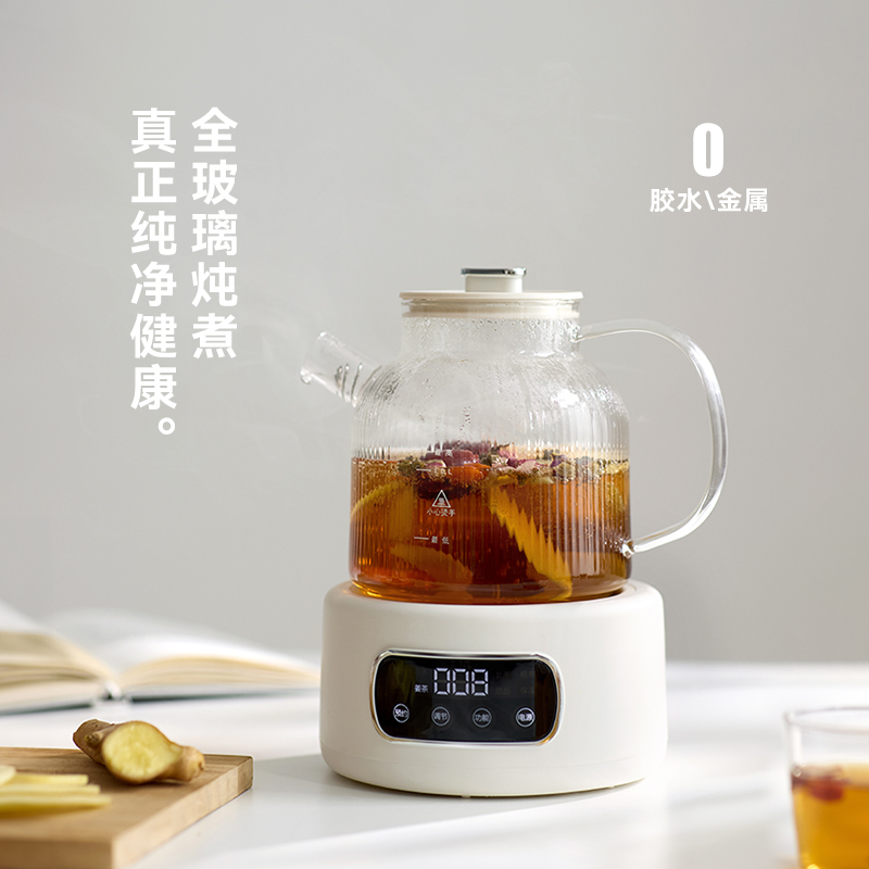 顏色:陶白色 容量:1.2L 額定功率:600W 凈重/毛重:1.28kg/1.6kg 產(chǎn)品尺寸:205*186*235mm 包裝尺寸:312*238*228mm 條碼 : 6941927410197 1. 全玻璃燉煮,一體成型0毒0膠水 2. 8大智能菜單,支持預(yù)約和保溫功能 3. 小氣泡精燉技術(shù) 4. 可視電子屏,超大壺口,杯身刻度線