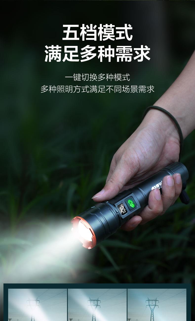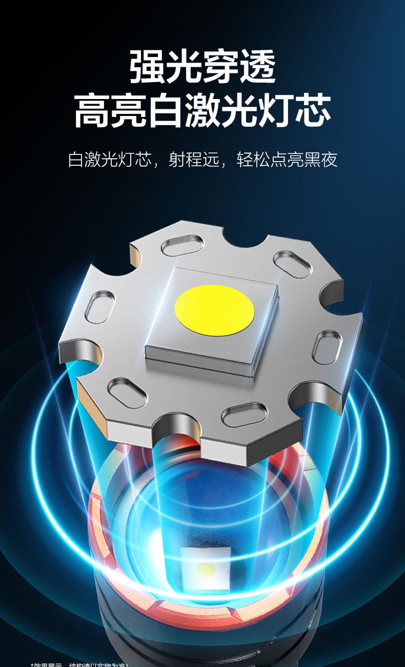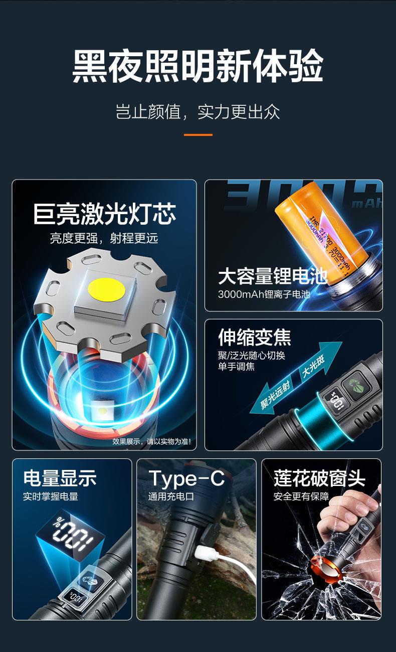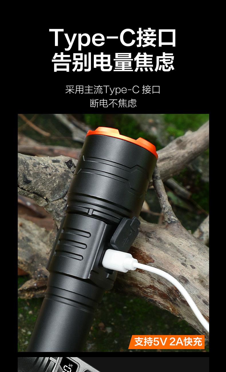 ·白激光巨亮遠(yuǎn)射; ·伸縮變焦,聚光-泛光自由調(diào)節(jié);·可視化電量顯示,狀態(tài)一目了然;·五檔模式,自由調(diào)節(jié); ·Type-C通用充電口,支持5V 2A快;·日常防水,安全耐用; ·大容量鋰電池,續(xù)航無憂;
