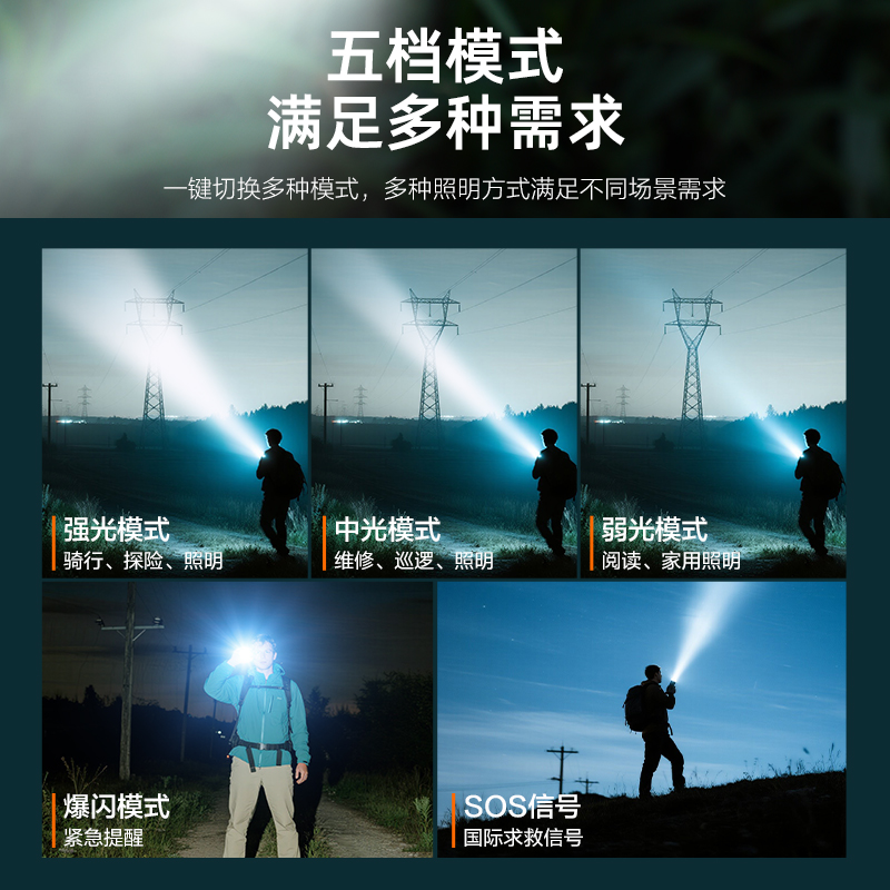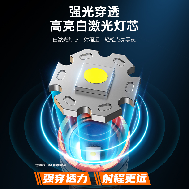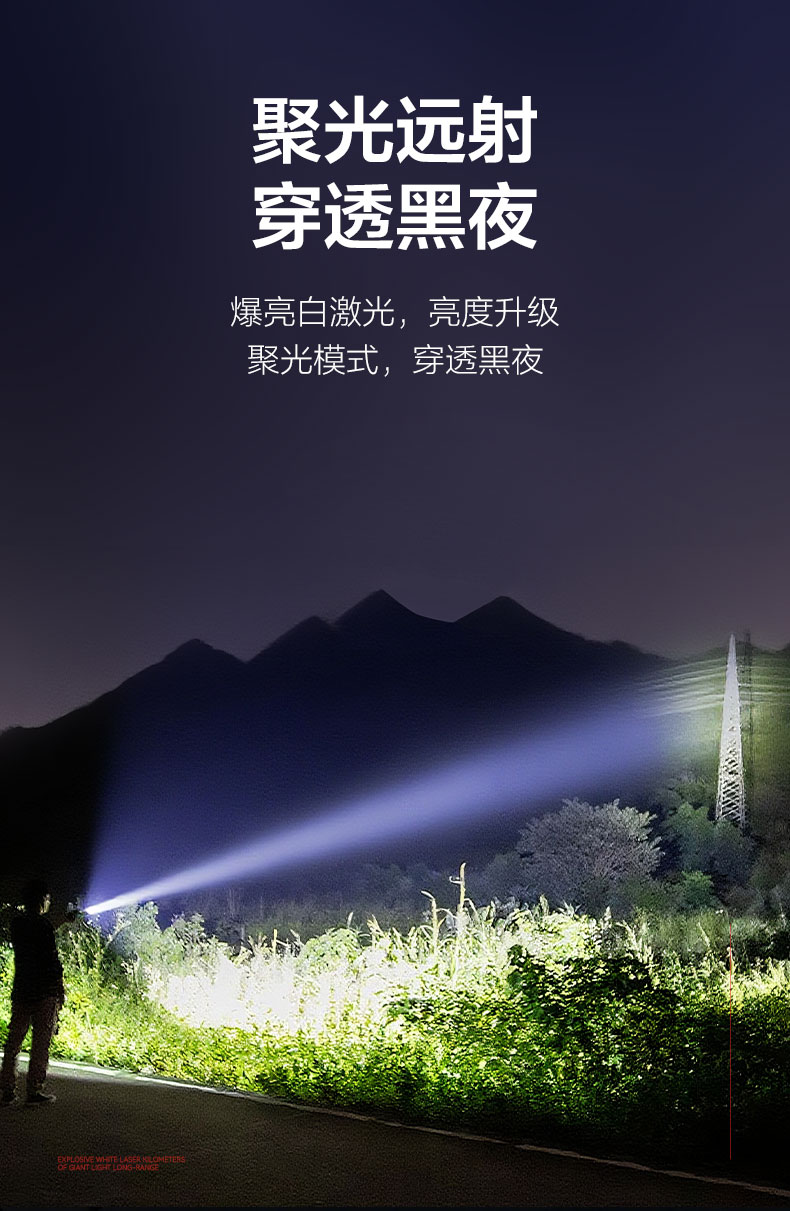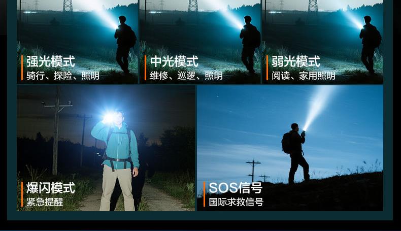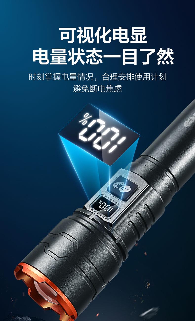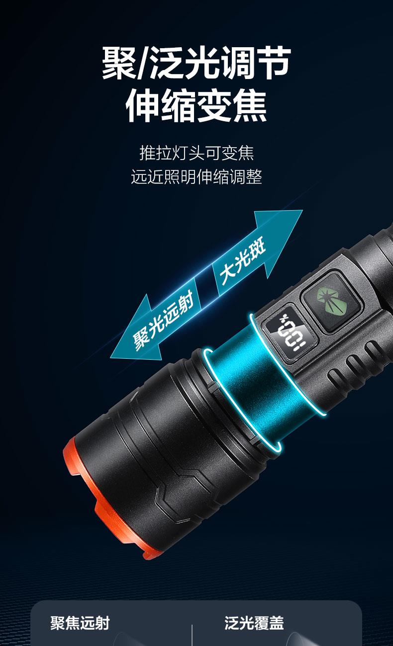 ·白激光巨亮遠(yuǎn)射; ·伸縮變焦,聚光-泛光自由調(diào)節(jié);·可視化電量顯示,狀態(tài)一目了然;·五檔模式,自由調(diào)節(jié); ·Type-C通用充電口,支持5V 2A快;·日常防水,安全耐用; ·大容量鋰電池,續(xù)航無憂;