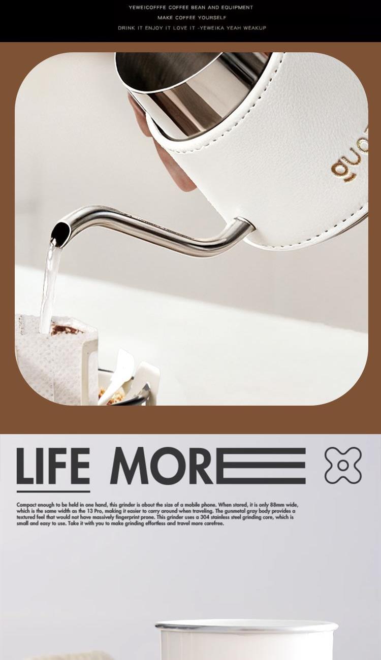 容 量:手沖壺:350ml 咖啡杯:350ml 材 質(zhì):手沖壺:304不銹鋼+皮革杯套/杯:304不銹鋼+噴陶+硅膠 尺 寸:手沖壺:160x81.6x86mm 杯:D80x83mm 禮盒尺寸:390x190x110mm,手袋尺寸:310x225x115mm