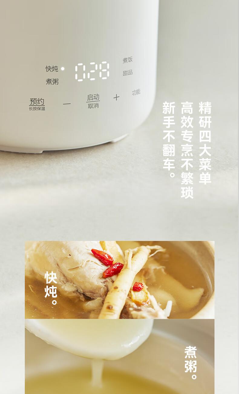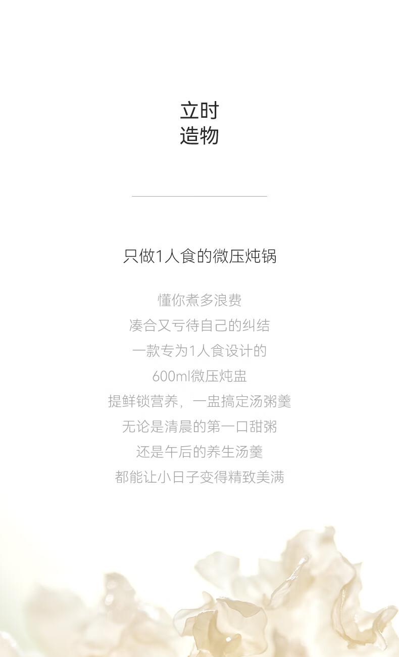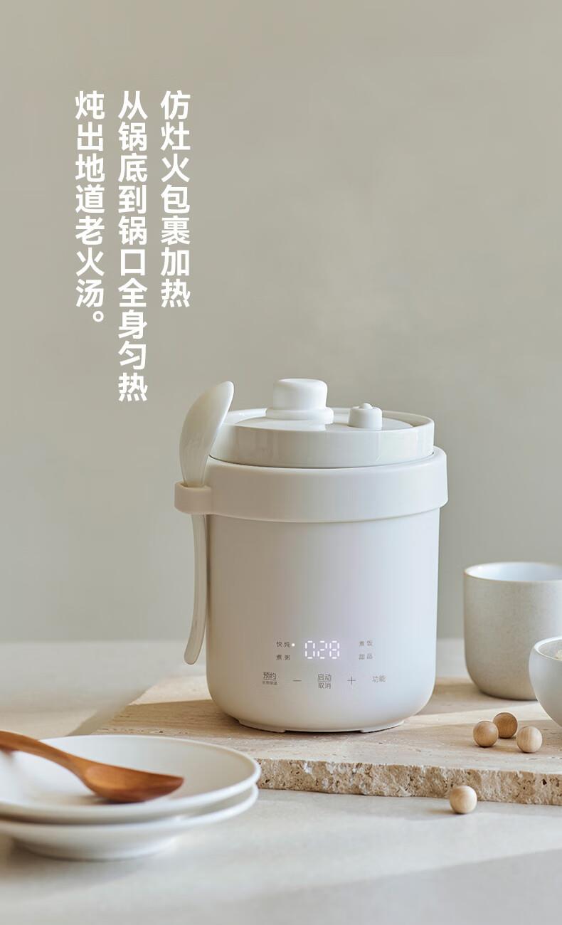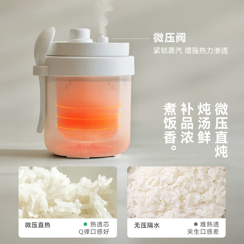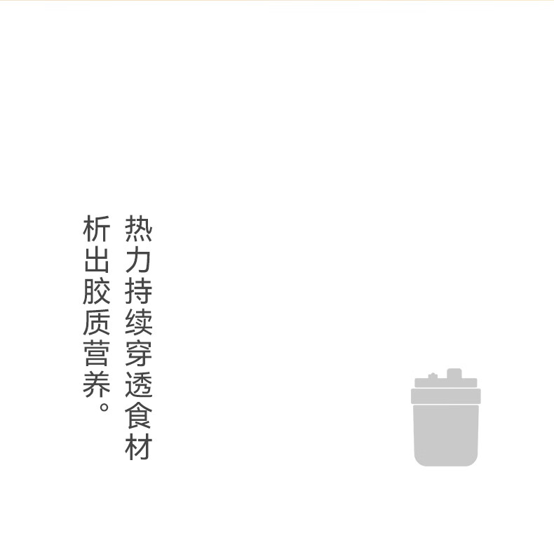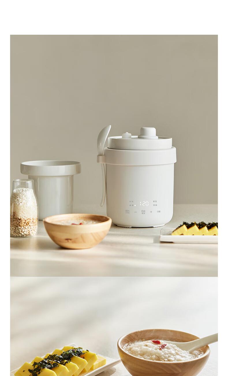 顏色:陶白色 容量:0.6L 毛重:1.6kg 額定功率:135W 產(chǎn)品尺寸:165*151*200mm 包裝尺寸:209*194*260mm 條碼 : 6977735712970 1. 增加了微壓技術(shù)的電燉鍋 2. 快速軟爛,營養(yǎng)不流失 3. 智能程序,預(yù)約定時,滿足多樣化制作