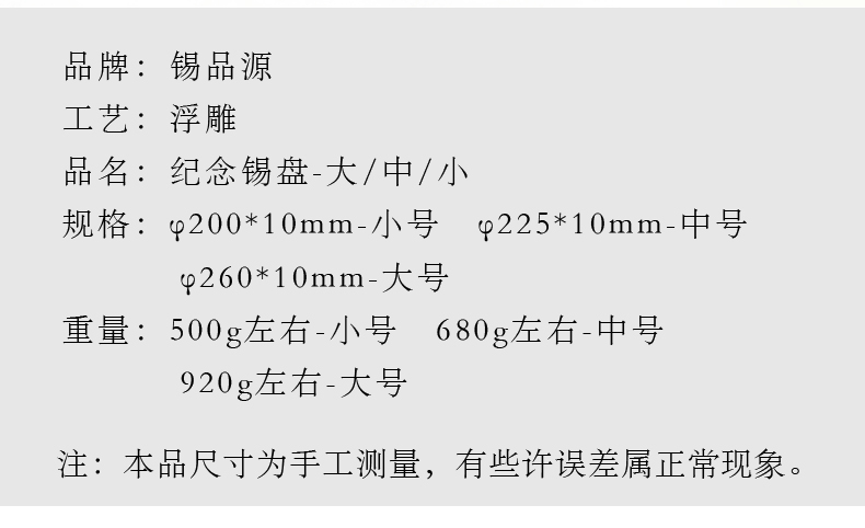 產(chǎn) 品:紀(jì)念盤-大/中/小