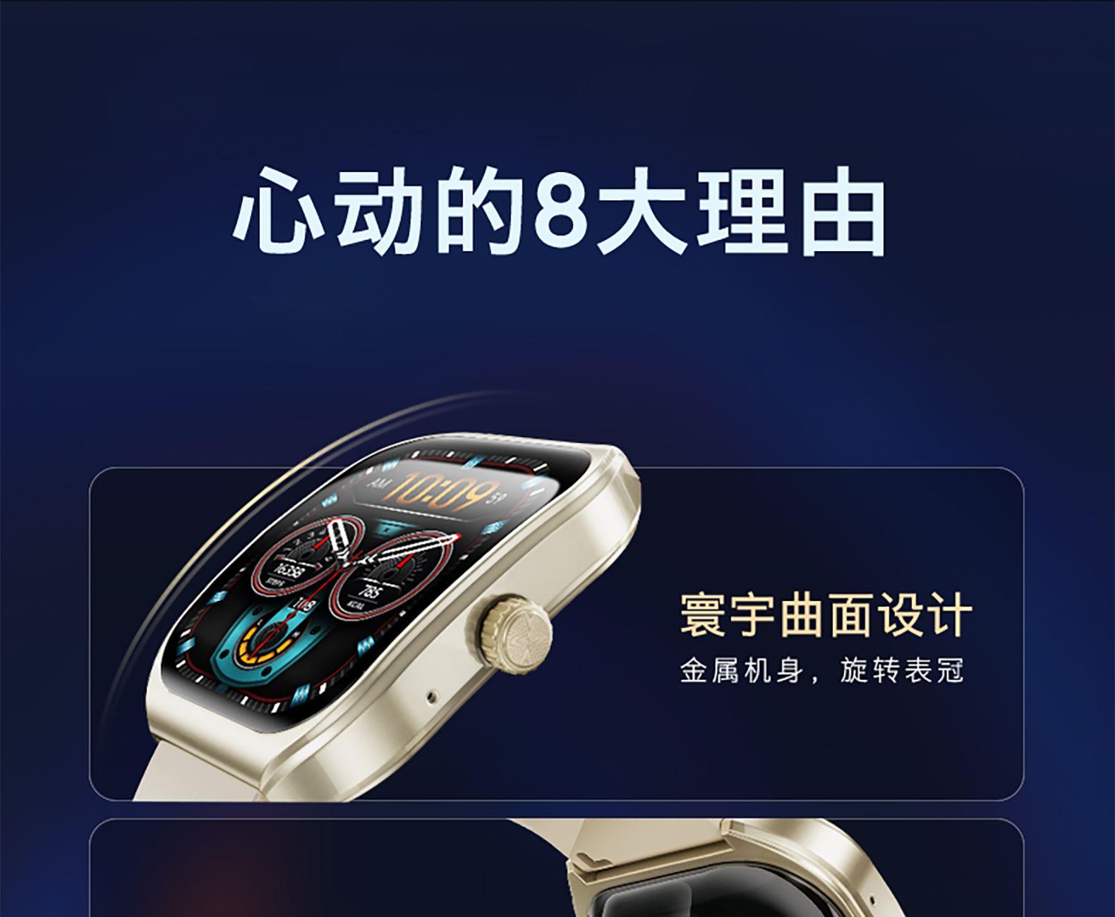 2.01寸弧面屏,240*296分辨率、電池300mAh、健康提醒、心率/血氧監(jiān)測、藍牙通話、藍牙音樂、睡眠監(jiān)測、來電接聽、短信提醒、社交APP消息提醒(支持微信,QQ)、鬧鐘提醒、久坐提醒、20+種運動、翻腕亮屏、尋找手環(huán)、遠程拍照、勿擾模式、表盤自定義、云端后臺海量表盤、本地語音功能控制、chat GPT、AI表盤(根據(jù)描述,生成表盤圖片)、支付寶、NFC、股票、常用聯(lián)系人、音樂控制、天氣等;