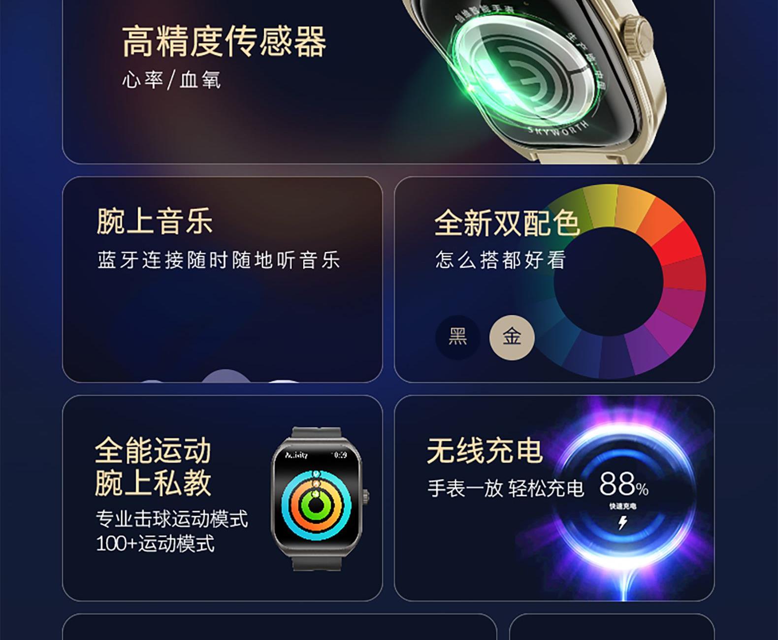 創(chuàng)維運動健康心率藍牙通話智能手表Watch4PRO