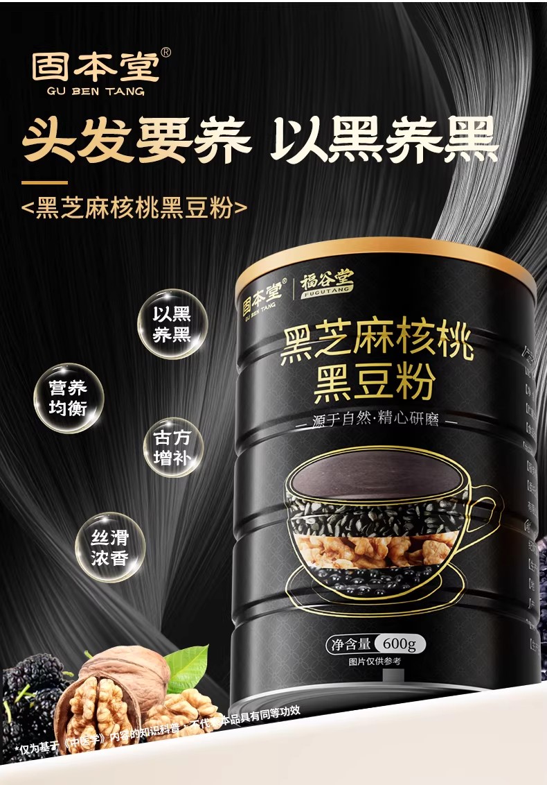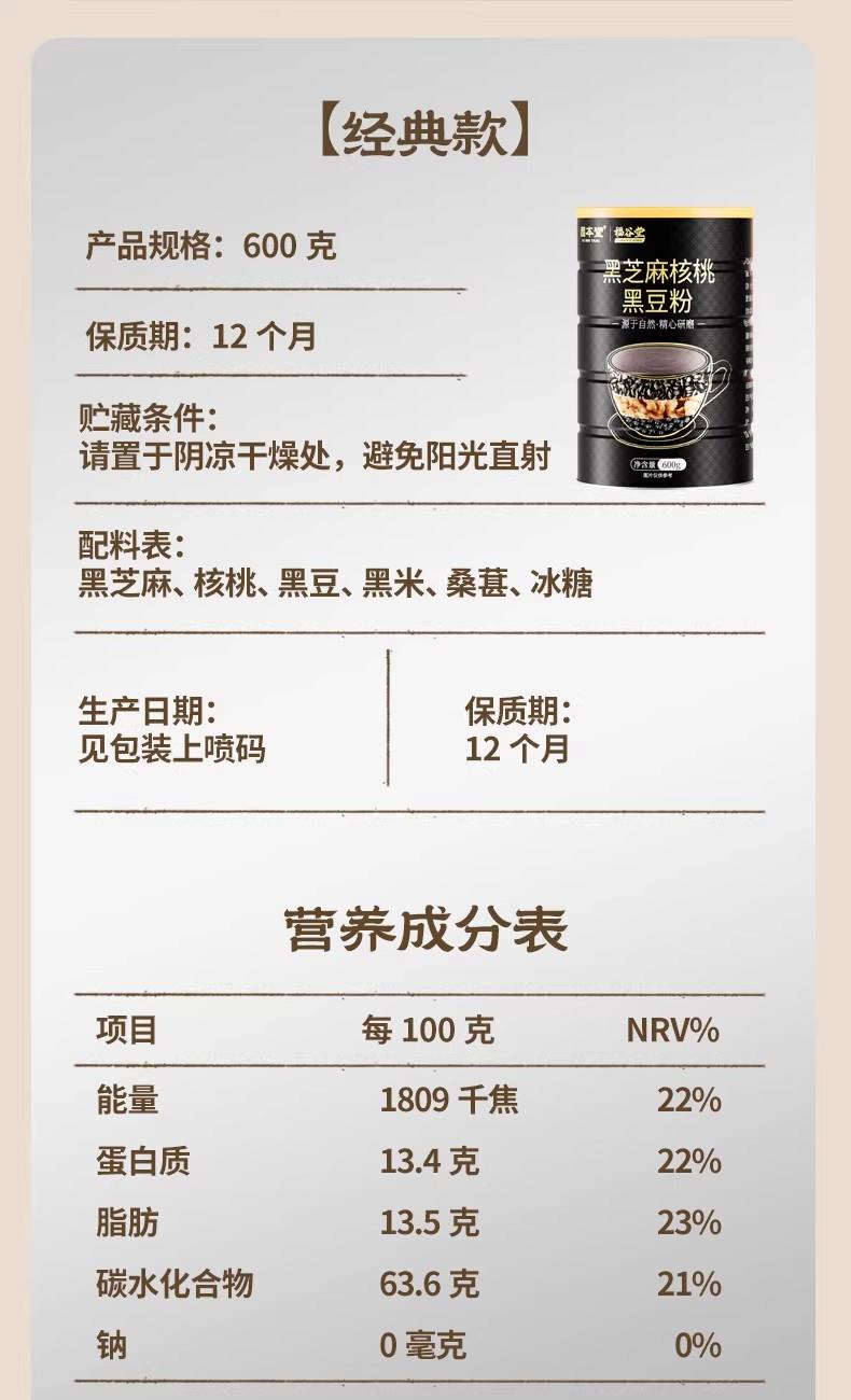 固本堂黑芝麻核桃黑豆粉600g*2罐GBT0T068