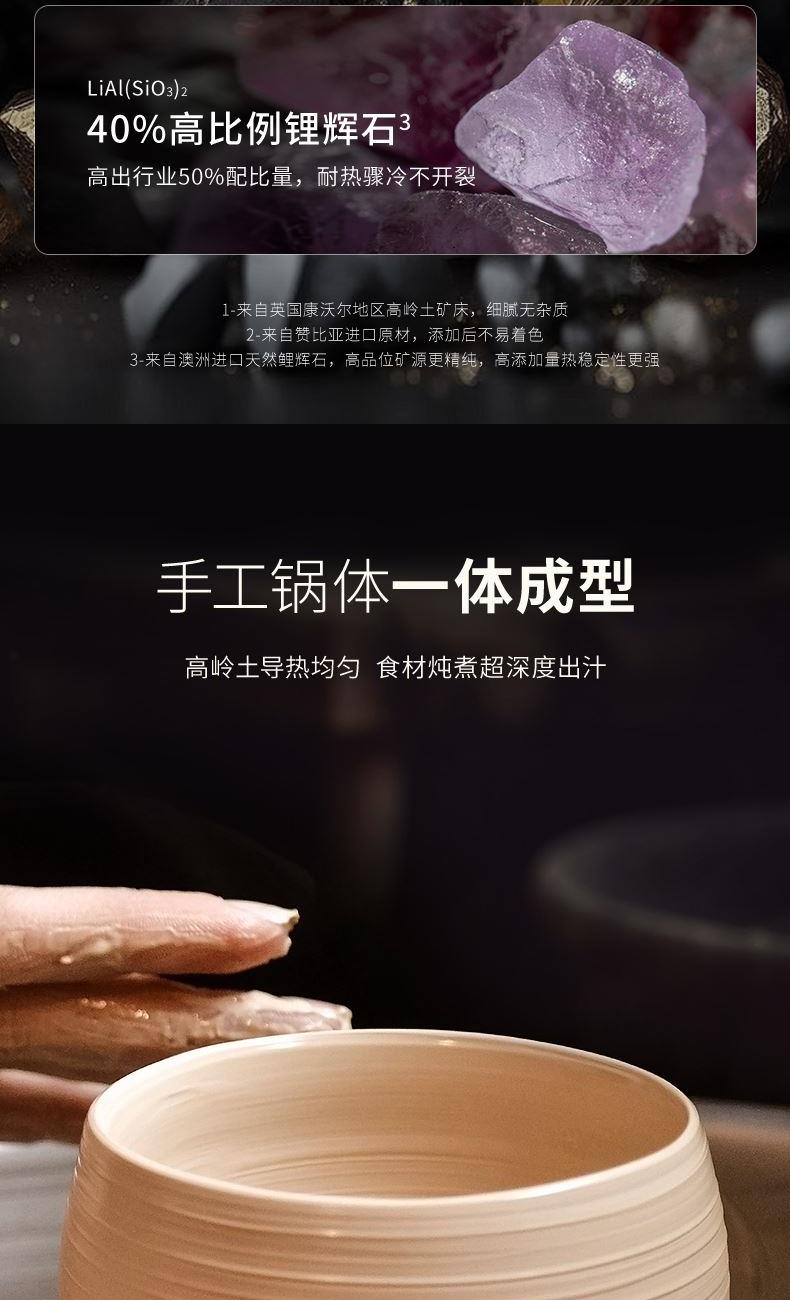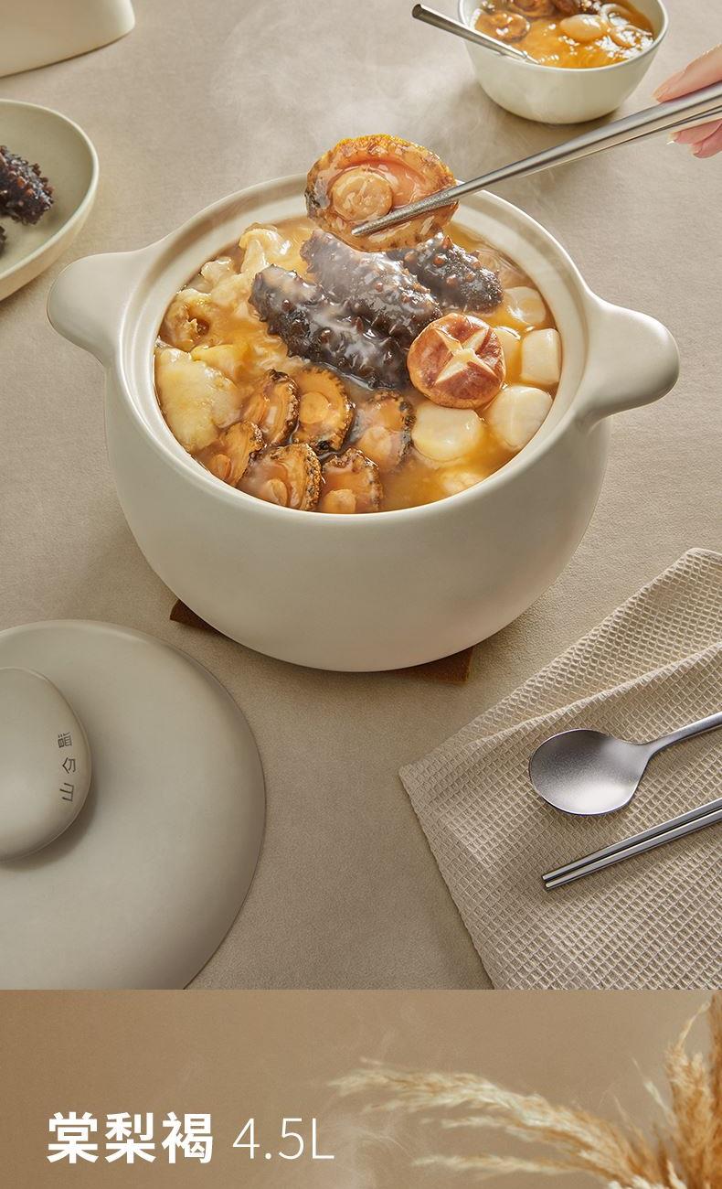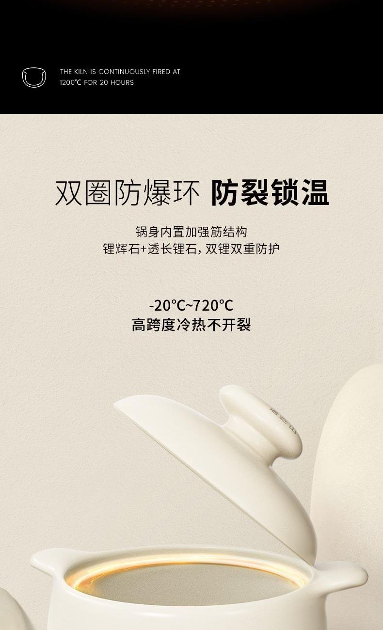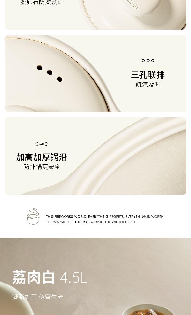 【型號(hào)】VE068 【SKU】VE068-4.5LPk01 【材質(zhì)】陶瓷 【規(guī)格】4.5L 【凈重】3.5kg 【毛重】4.2kg 【包裝方式】郵購(gòu)盒 【包裝尺寸】330*330*270mm 【顏色】白境玫瑰 【條碼】6972547375474 坯厚釉實(shí),古法澆釉工藝; 聚熱保溫,雙倍加厚鍋體; 導(dǎo)熱均勻,冷熱不開(kāi)裂; 鍋身細(xì)膩,鍋耳握感圓潤(rùn)。