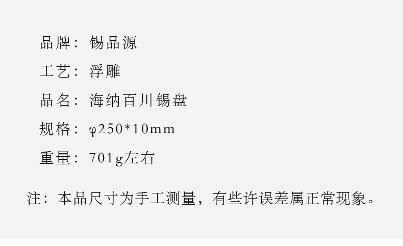 產(chǎn) 品:海納百川錫盤