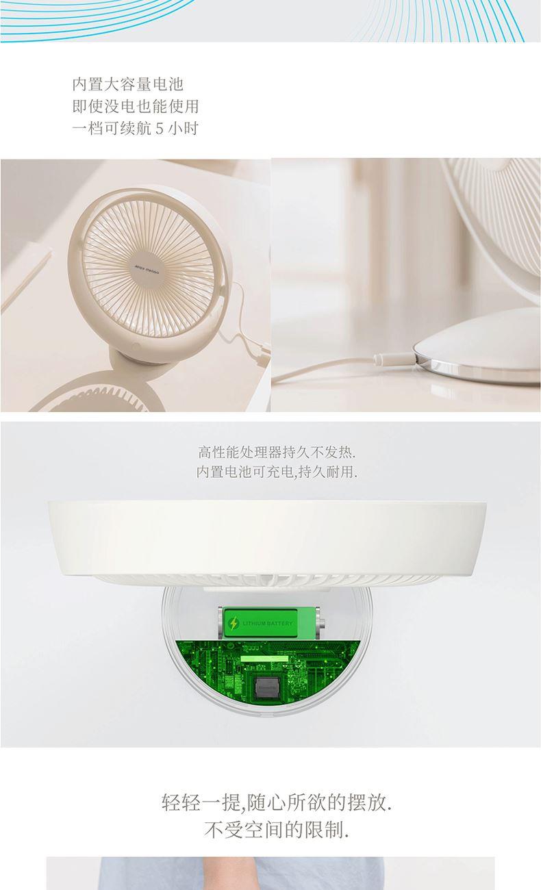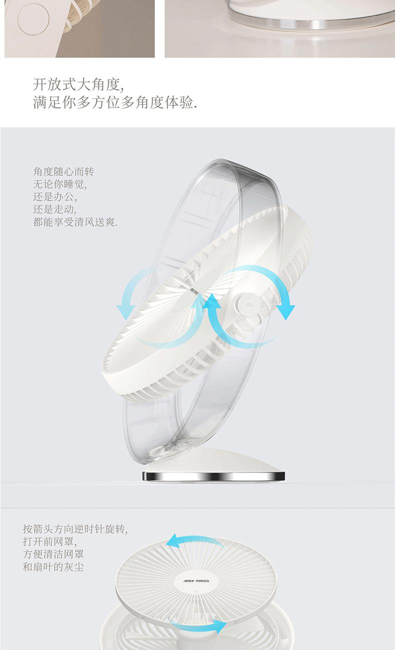 顏色:白色 電池:2000毫安 輸入:5V-1A 檔位:1-2-3檔風速 產(chǎn)品尺寸:242*118*263mm 包裝尺寸:246*125*270mm 產(chǎn)品凈重:516g 產(chǎn)品含彩盒重量:733g 大箱尺寸:625*502*285mm 整箱重量:8.45kg 好配置造就大風力,無刷電機,模擬自然風 內(nèi)置大容量電池,隨,時隨地使用無憂慮 開放大角度,滿足你多方位多角度體驗 輕松的設(shè)計,自然而舒適