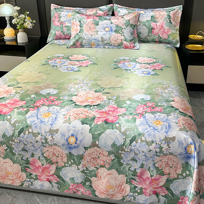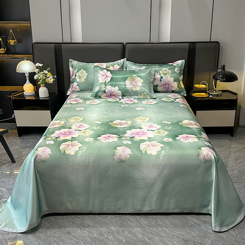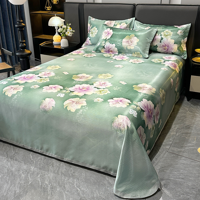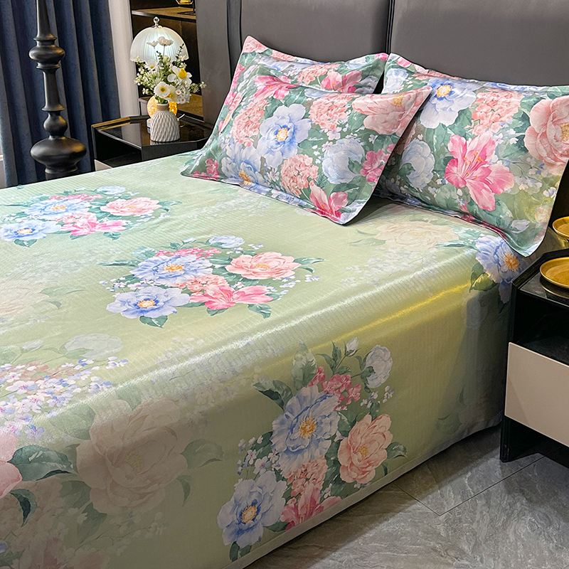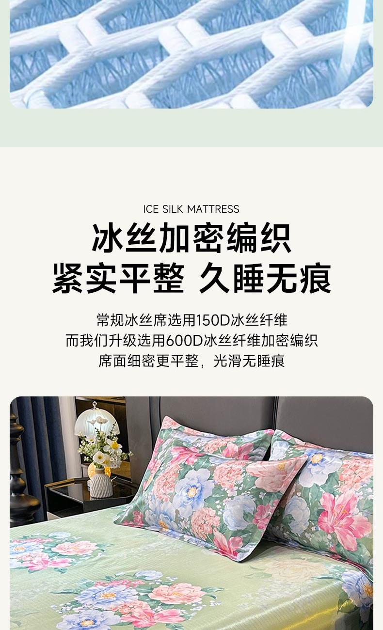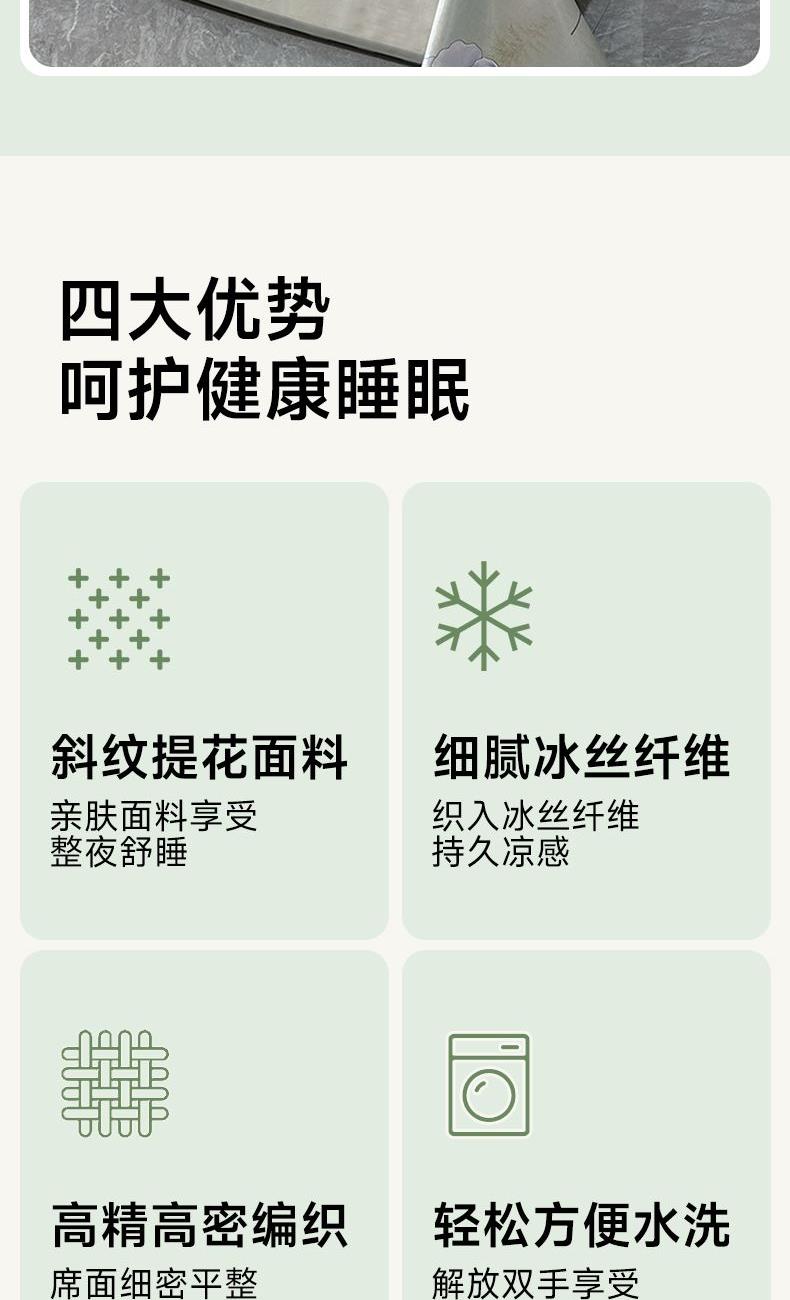 貨 號(hào) :HLX-XZ2513 面 料 :斜紋提花涼感絲 規(guī) 格 :230*250cm 重 量 :凈重約1400g 包裝尺寸 :48*36*13.5cm 裝 箱明細(xì) :8套 /箱或50條/包 1.精選面料 : 采用斜紋提花面料,涼感舒適,觸感柔軟,還原清涼睡感; 2.精湛印染 : 活性印染工藝,不退色不縮水,圖案鮮活靚麗,親膚透氣; 3.精致工藝 : 提花工藝 盡顯高 級(jí),包邊工藝盡顯大氣;