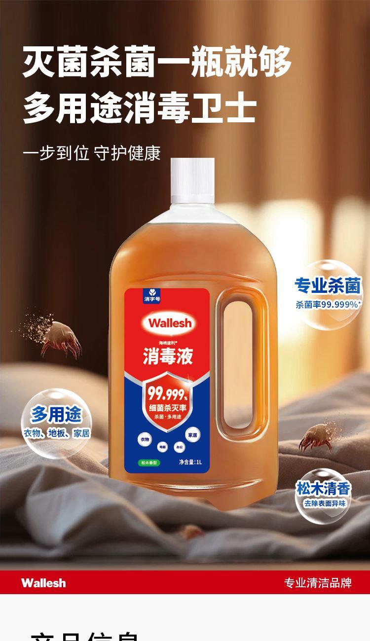 產(chǎn)品特點(diǎn):99.999%高效,1瓶搞定全屋消毒;可用于皮膚消毒、織物消毒、硬質(zhì)物體表面消毒;主要成分對(duì)氯間二甲苯酚高達(dá)4.3%~5.3%;經(jīng)典配方,經(jīng)典松木味香型