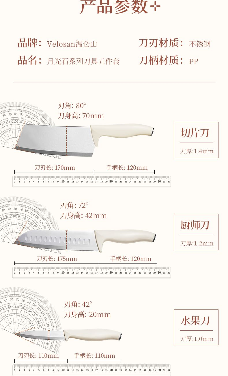 VELOSAN溫侖山月光石系列刀具五件套VE088